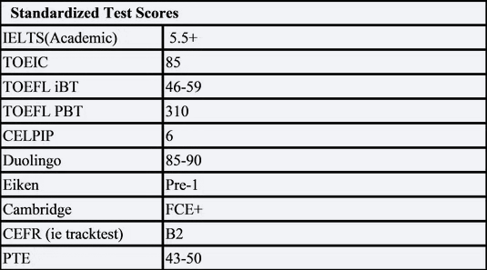 The approximate equivalent to other English evaluation tests may include Cambridge, Canadian Language Benchmarks, CELPIP TOEFL; Track Test (CEFR), and others.